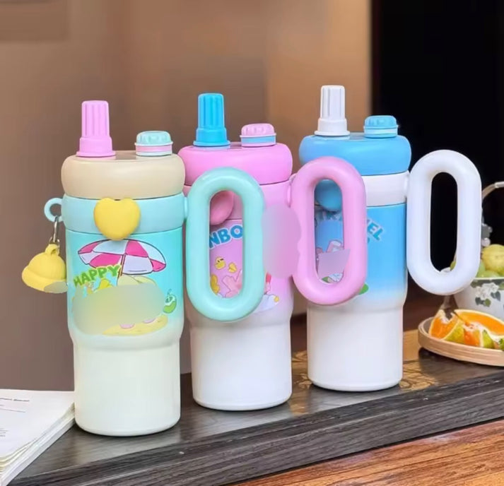 Cute Kawaii Insulated Tumbler Sipper 850ml With Handle & Straw Leakproof & Stainless Steel